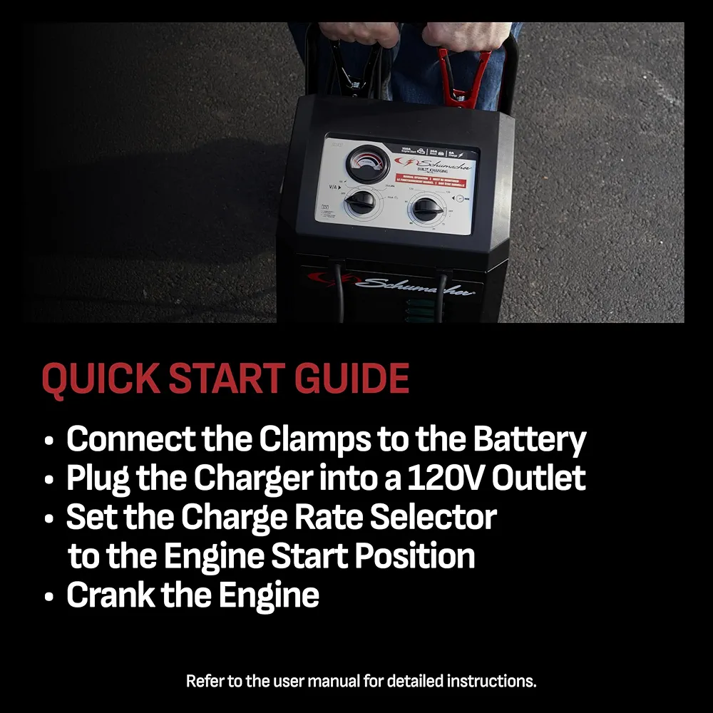 • Función 2-en-1: carga baterías y arranca motores con hasta 150 A de potencia de arranque.